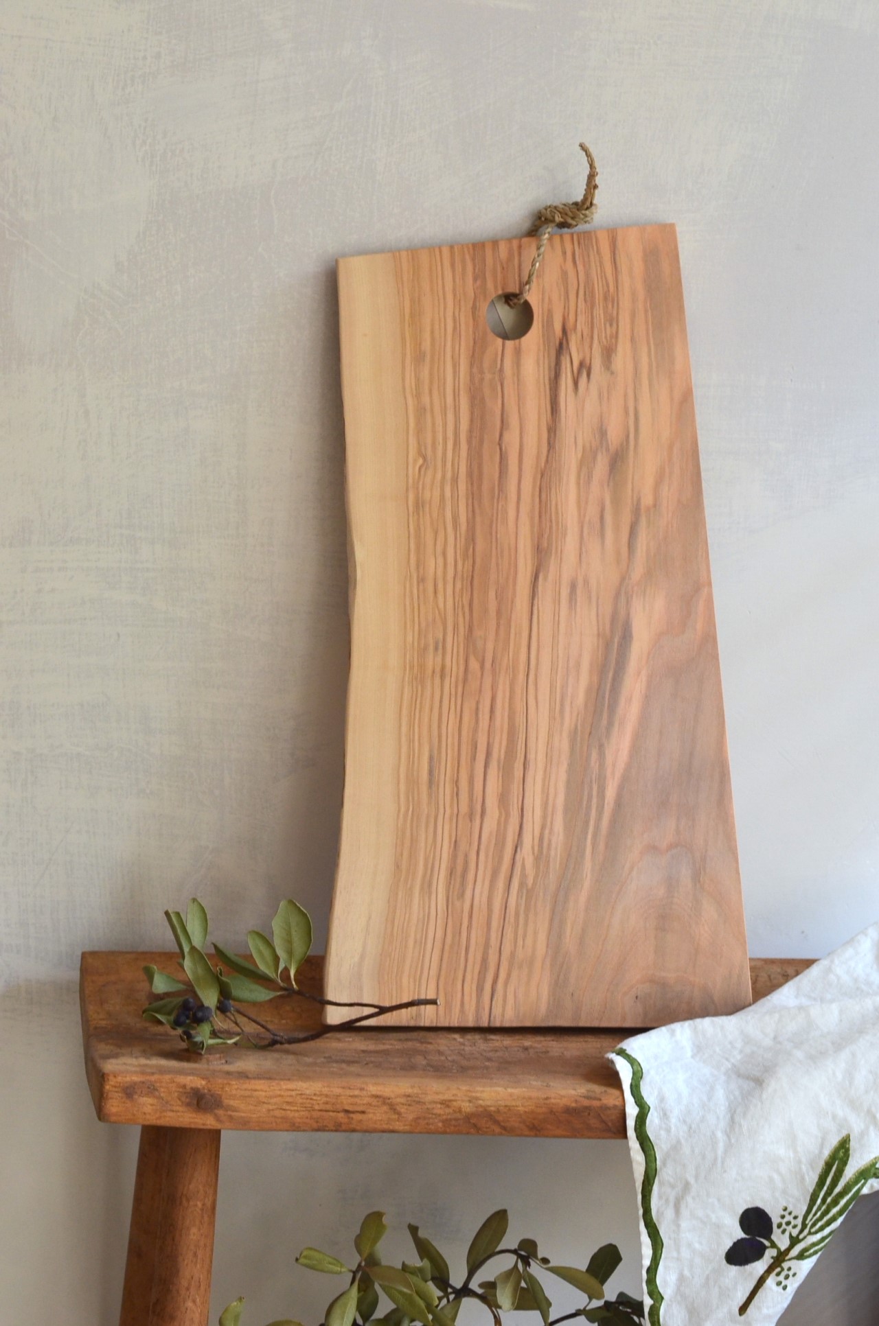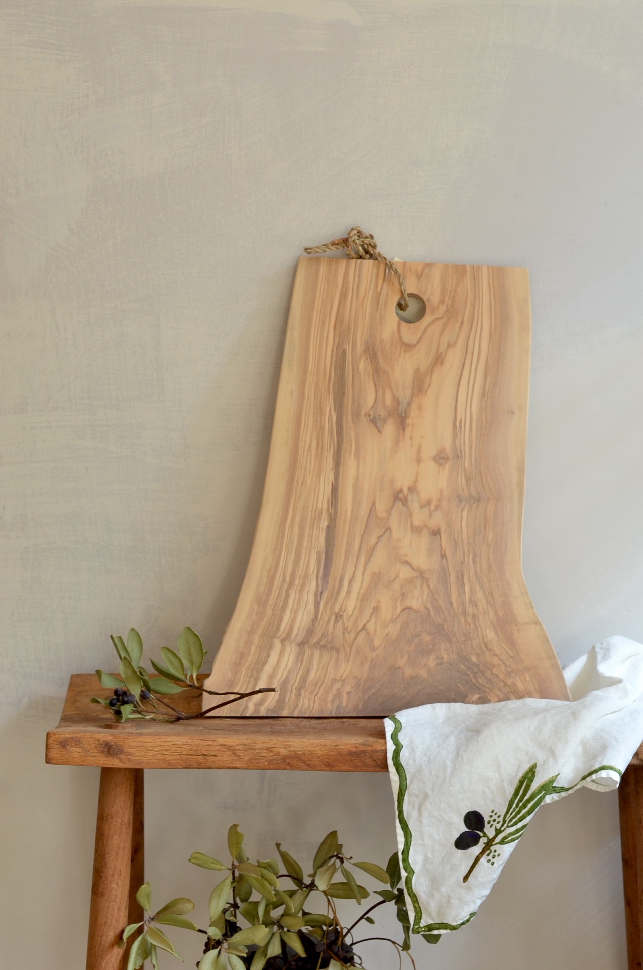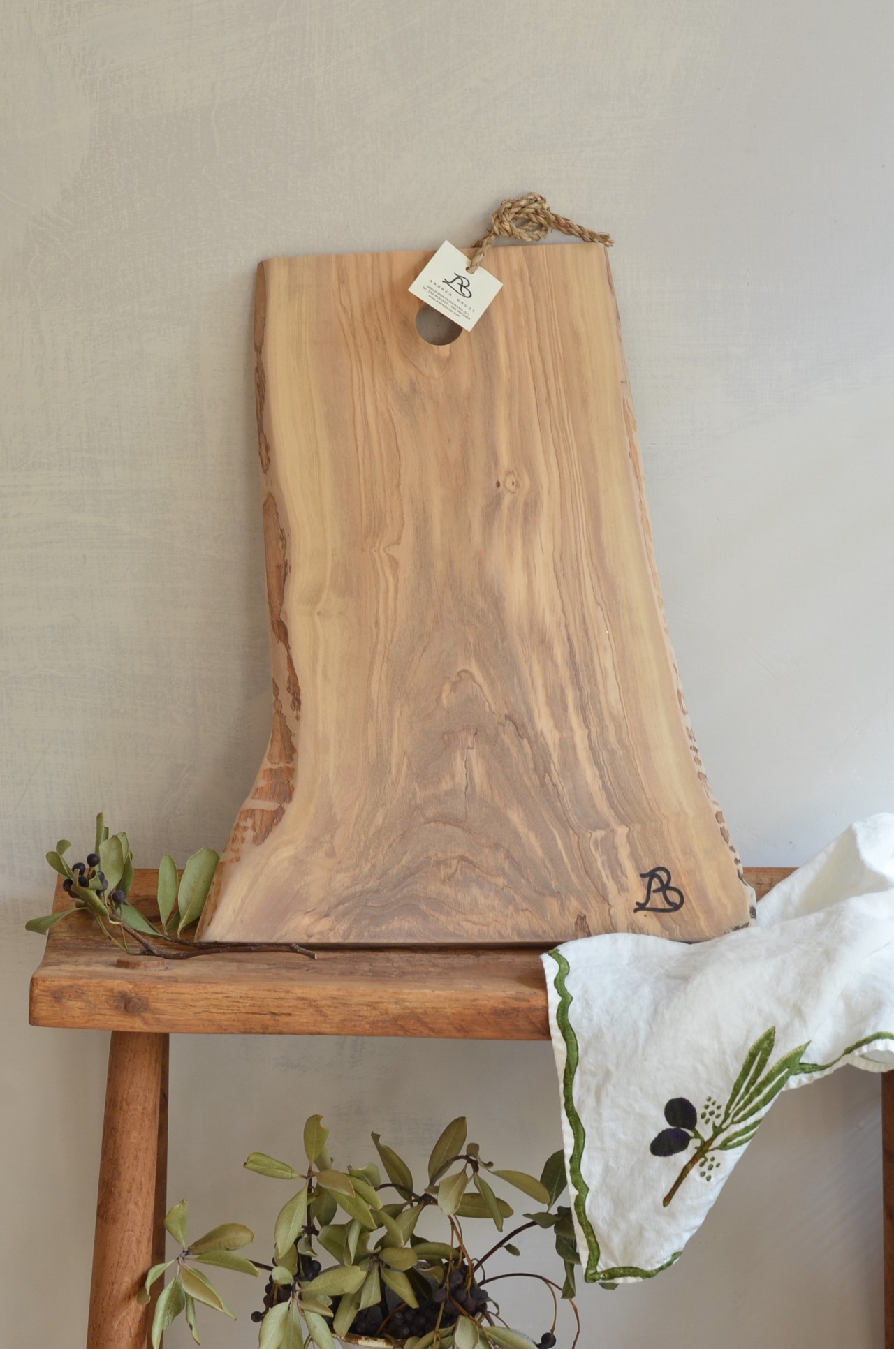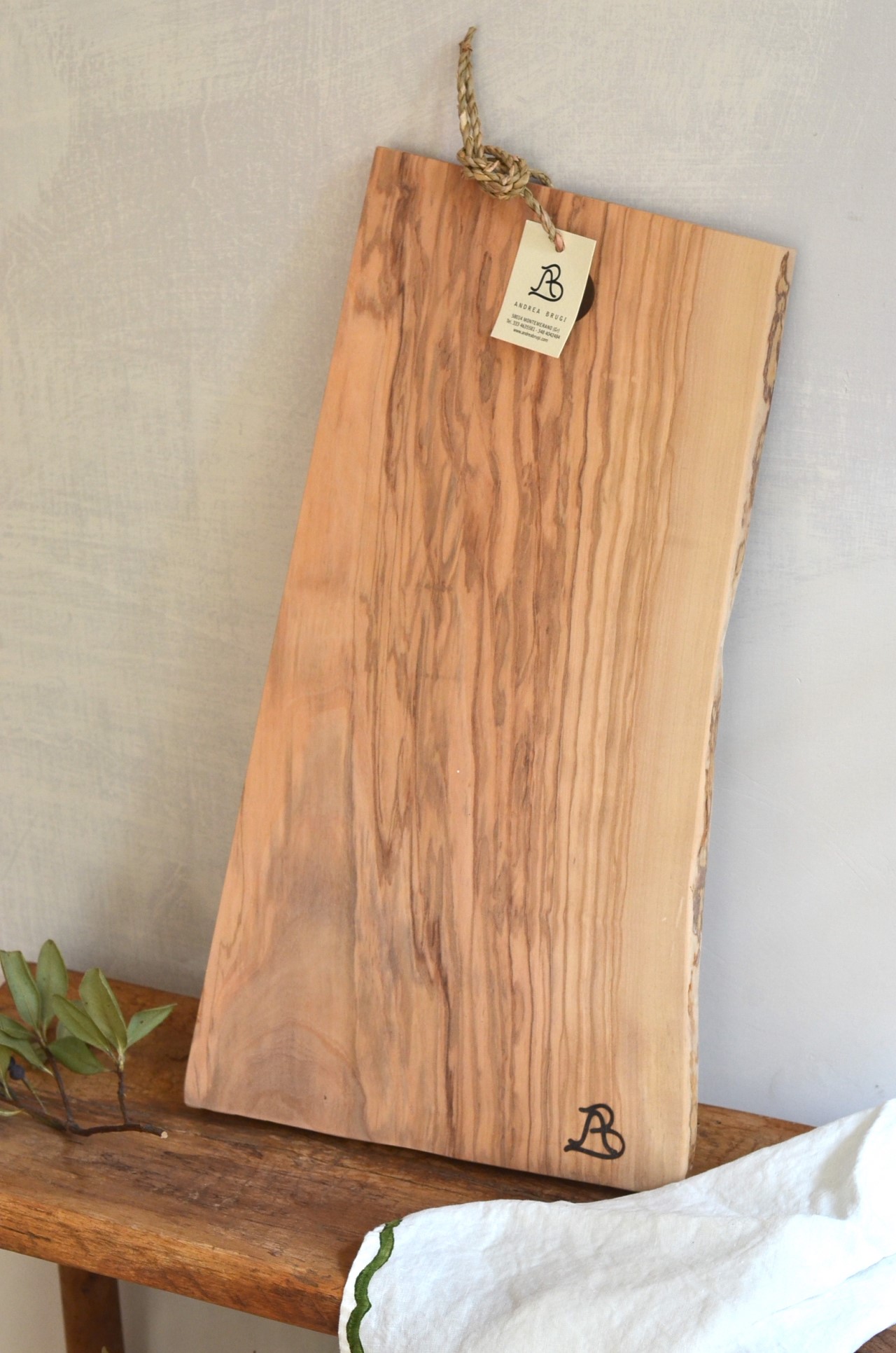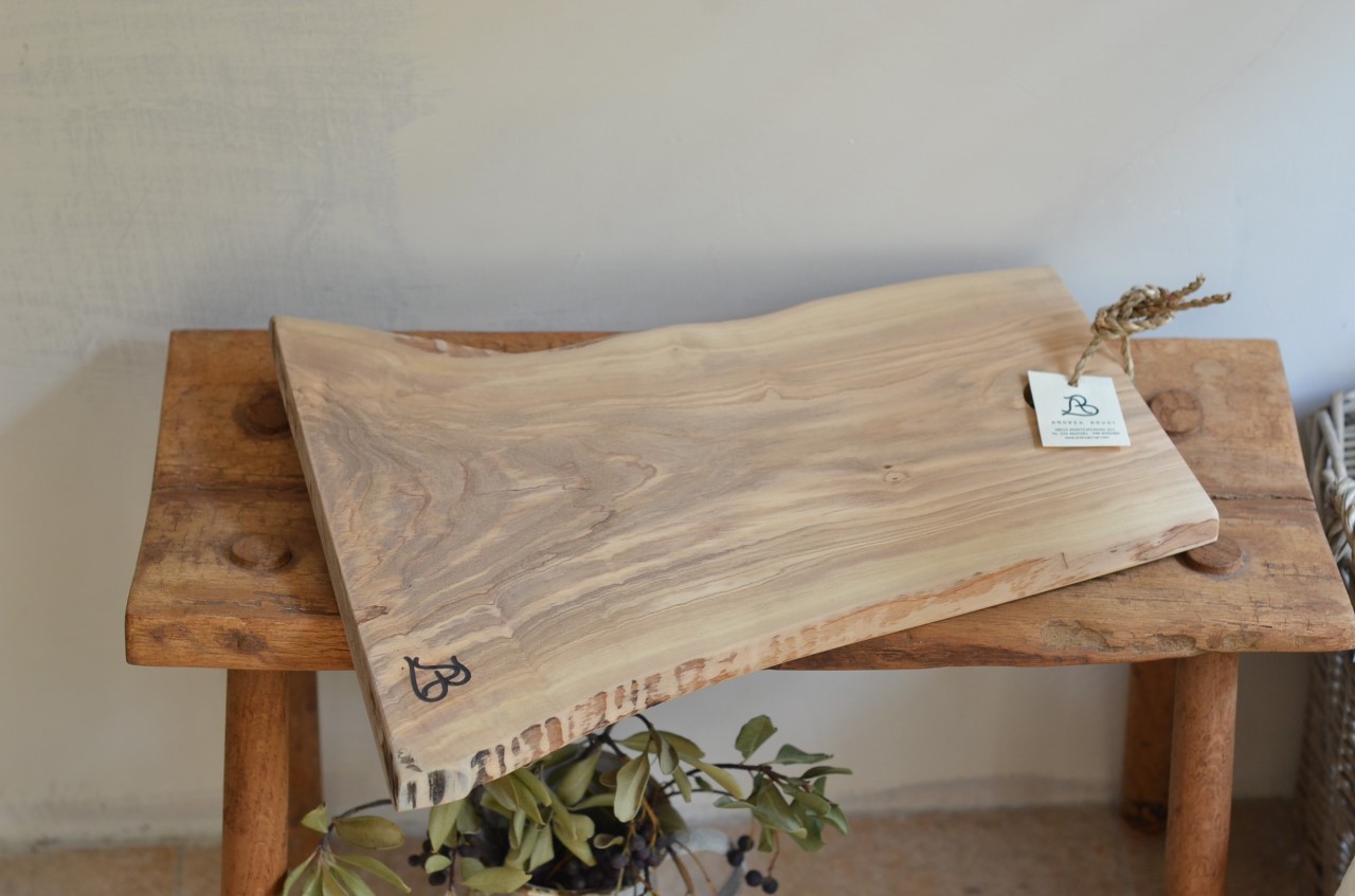 由義大利木匠 Andrea Brugi 純手工打造,選用托斯坎尼質地最好,樹齡達400年的橄欖樹;依照義大利的法令,唯有不能再結出果實的橄欖木才能砍伐,砍掉的橄欖木也必須同時栽植新的橄欖樹。正因如此,更顯得每一塊橄欖木砧板的珍貴。