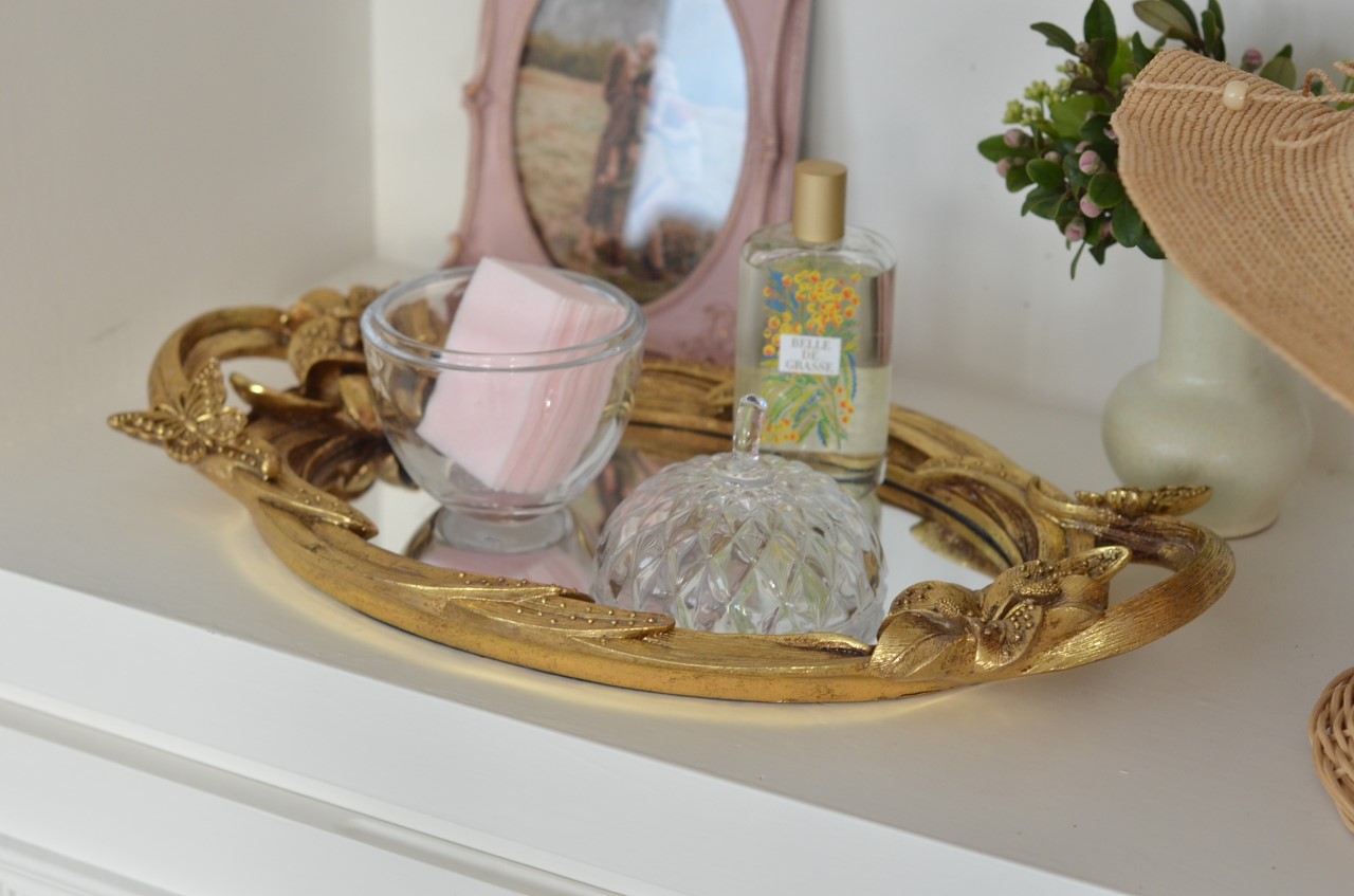 引來彩蝶停佇的橢圓托盤, 除了用於常見的餐桌和茶几佈置外, 擺放在玄關,酒精、鑰匙、零錢就有了規整的地方; 臥室裡,則可以將喜愛的香氛和手錶飾品 佈置出一個放鬆的小天地; 歡慶時刻放上紅酒、冰桶或醒酒器, 古銅色的金在鏡面的反射下更添輕奢氣息, 只稍一點微光照亮, 那光澤便如暗夜流光 散發淡而寧靜的氣質~ `