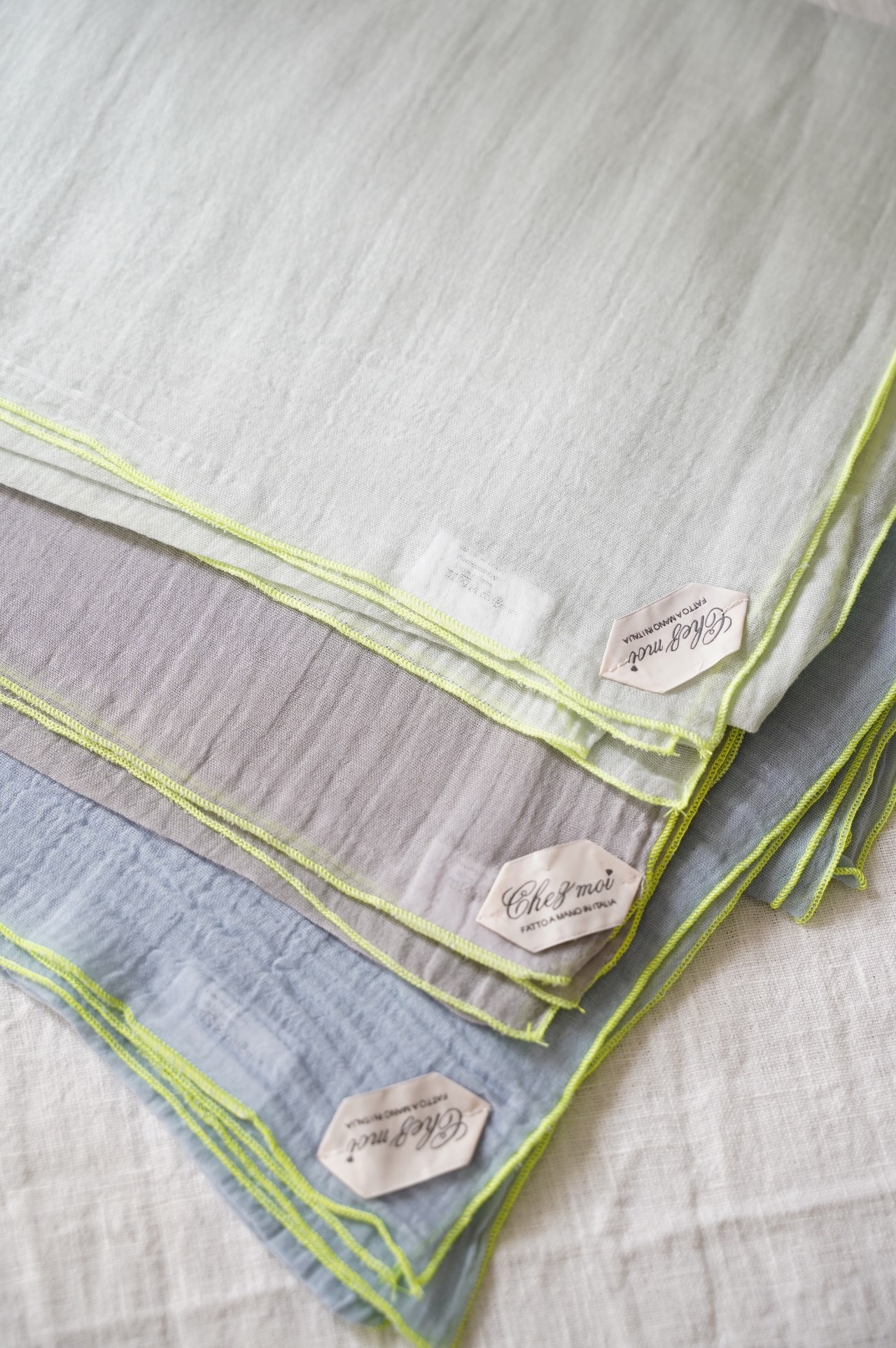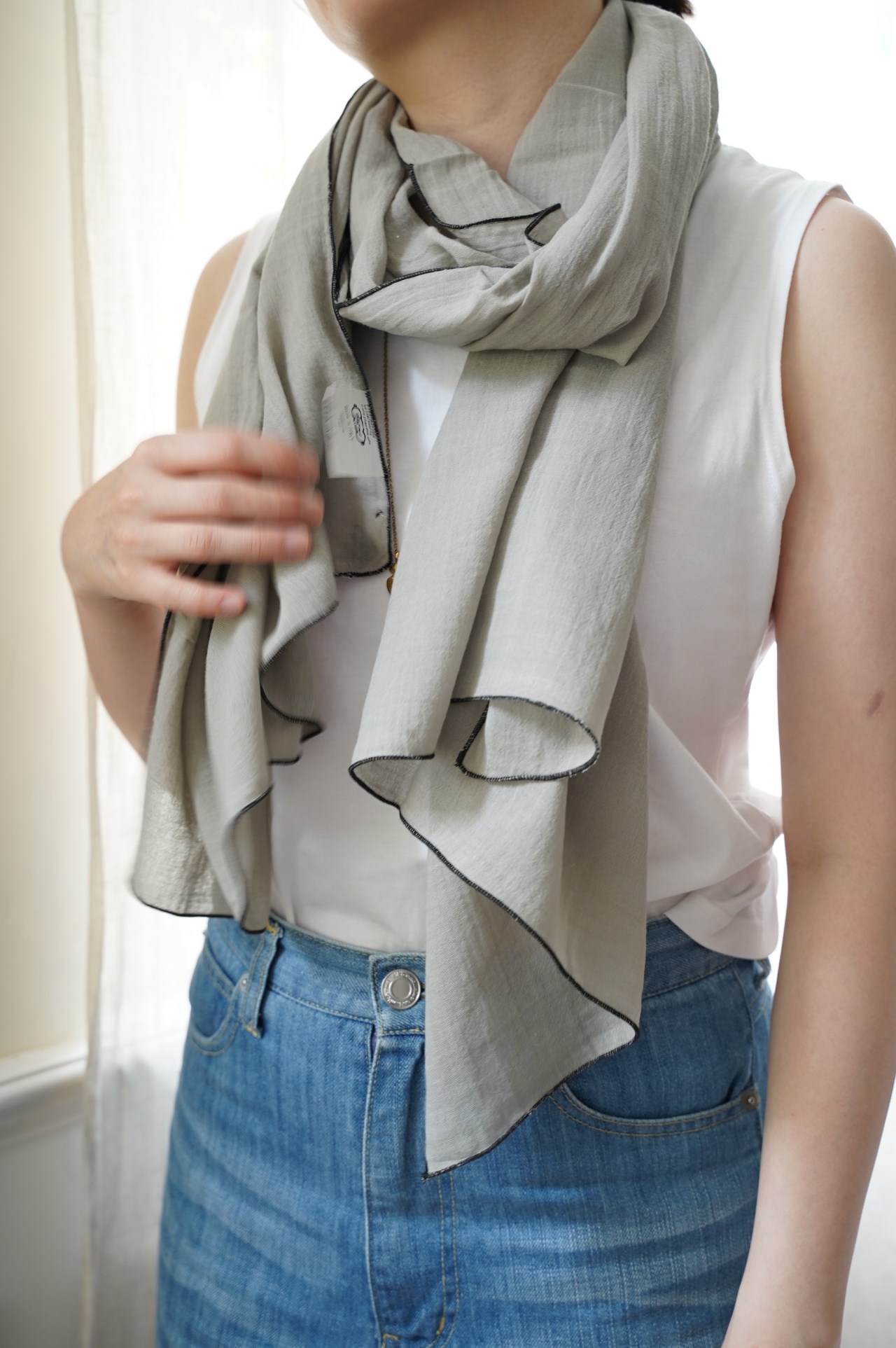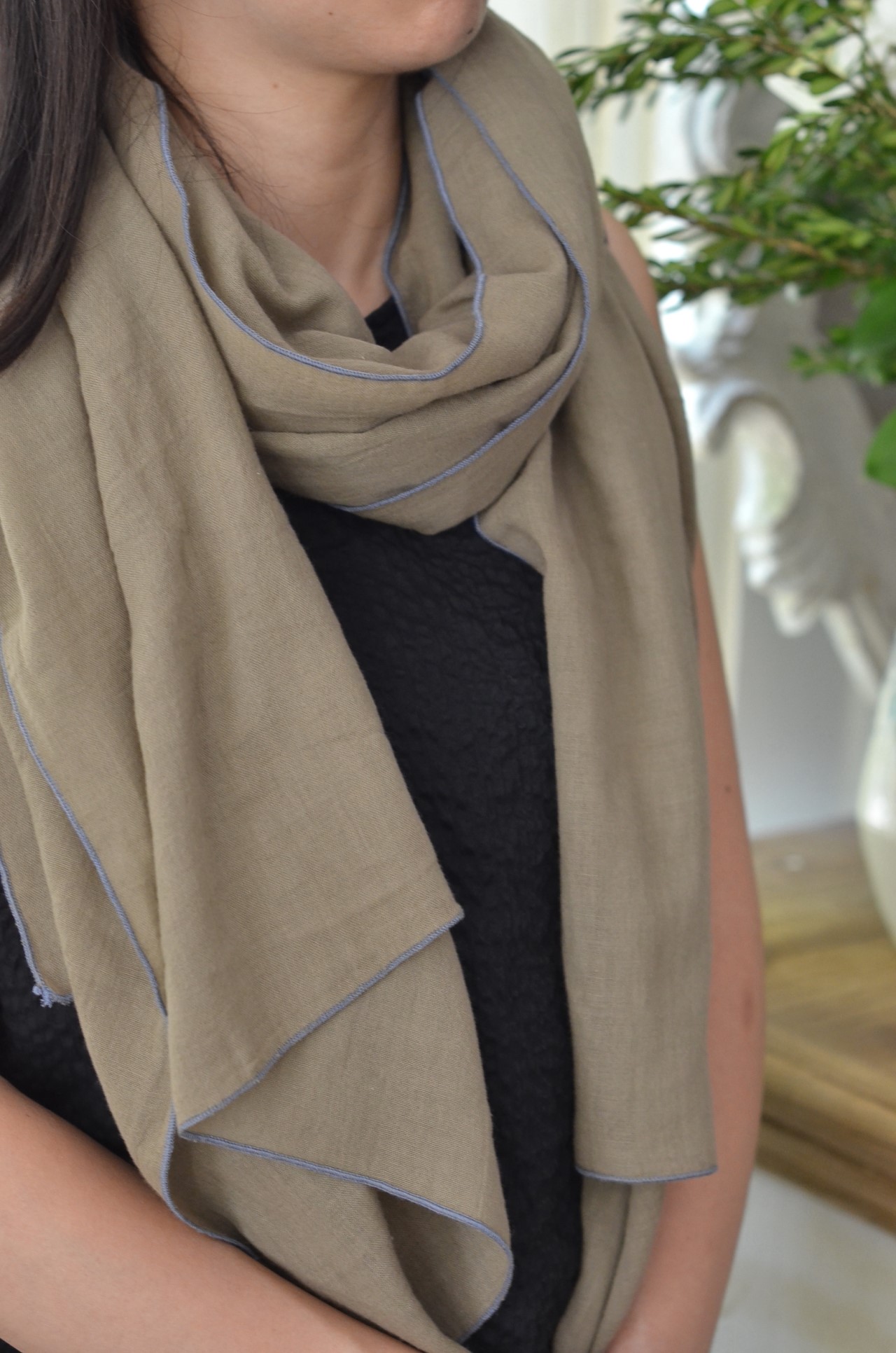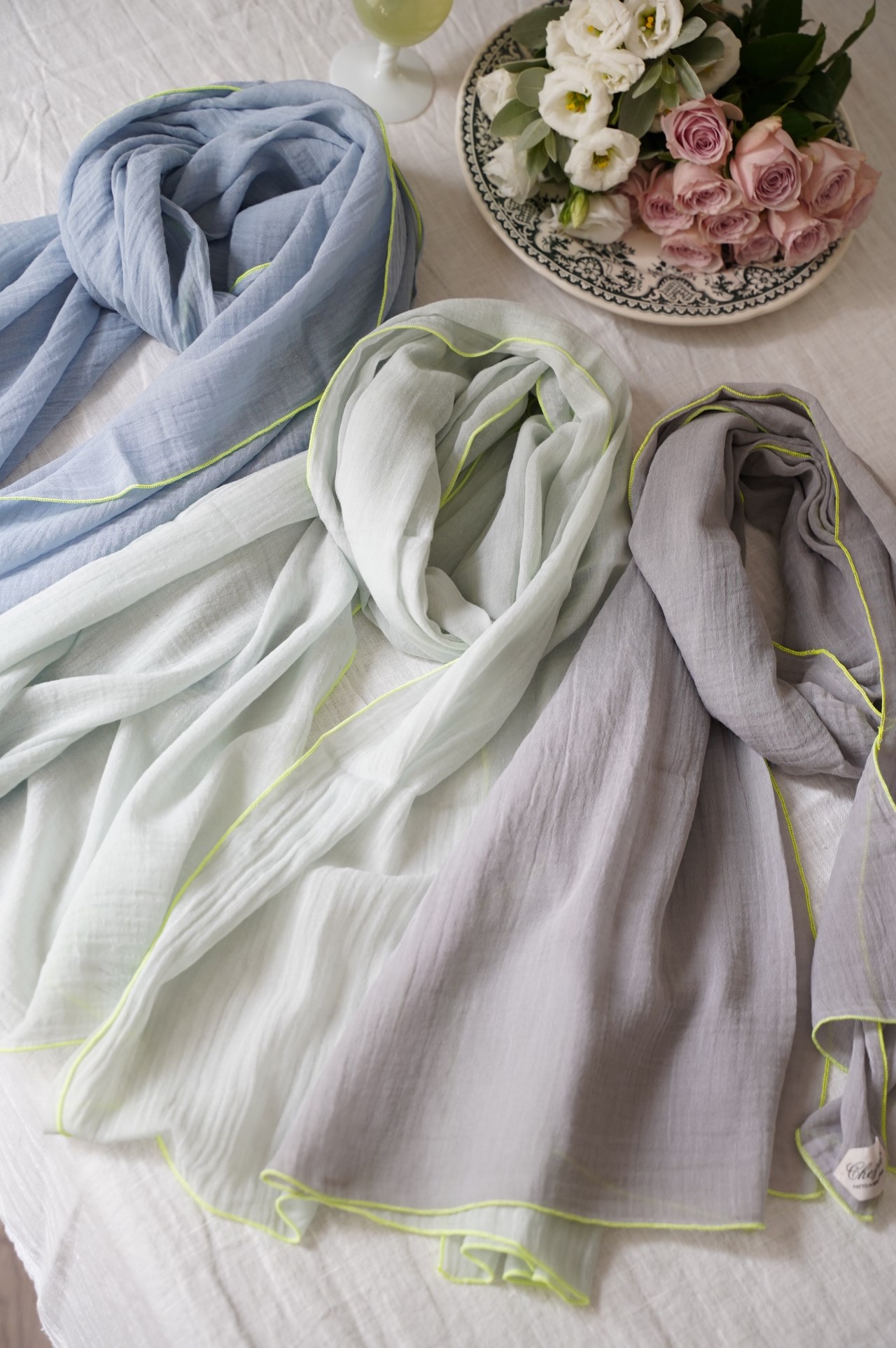極為細軟輕薄的棉質圍巾, 從照片就能感受到它柔順的質感, 低調的莫蘭迪色 只綴以簡單的滾邊, 就有一種與生俱來的優雅氣質~ 薄荷綠 淺灰 天空藍 卡其綠 米灰色 洗滌說明: 可機洗。 請勿使用漂白劑。 不可烘乾 , 建議平放晾乾。 可低溫熨燙(最多110°C)。 可乾洗。