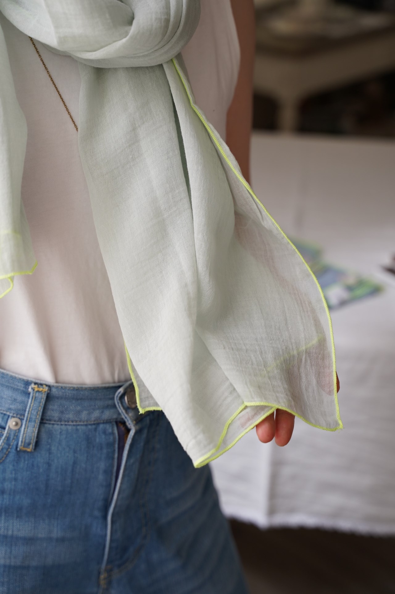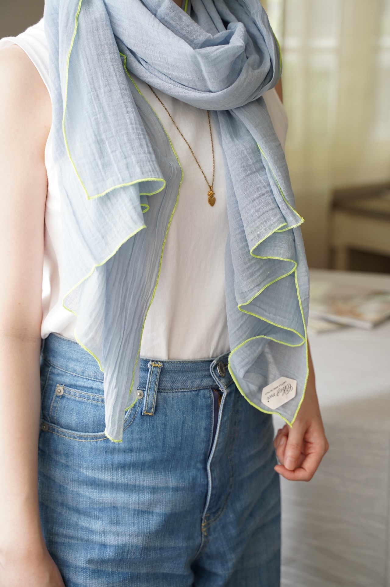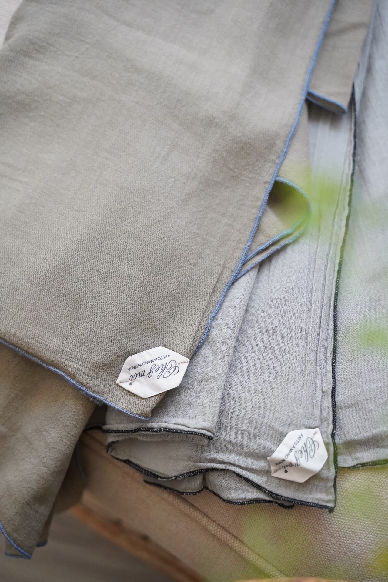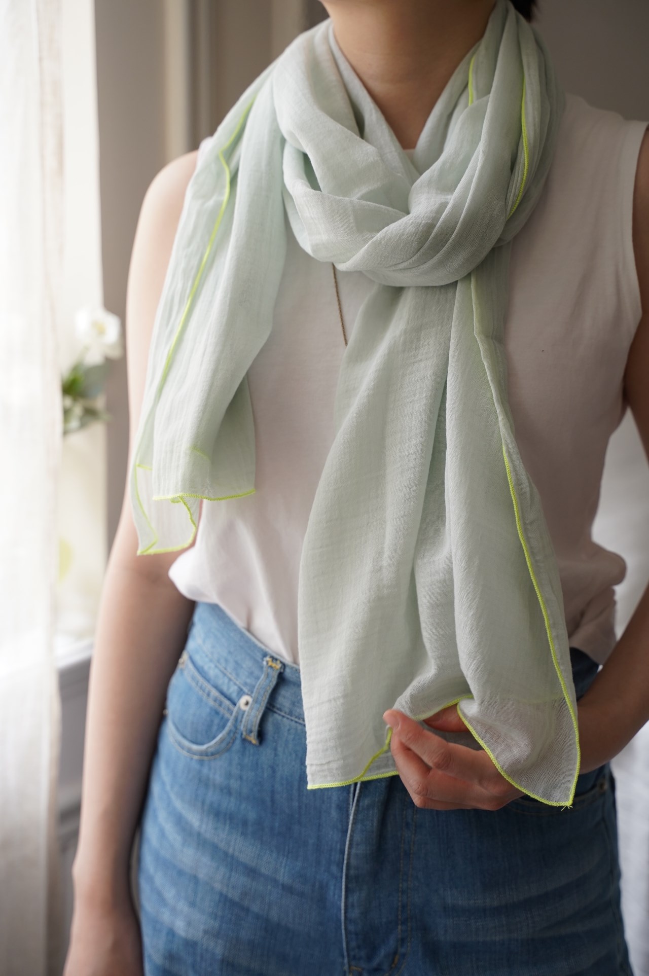 極為細軟輕薄的棉質圍巾, 從照片就能感受到它柔順的質感, 低調的莫蘭迪色 只綴以簡單的滾邊, 就有一種與生俱來的優雅氣質~ 薄荷綠 淺灰 天空藍 卡其綠 米灰色 洗滌說明: 可機洗。 請勿使用漂白劑。 不可烘乾 , 建議平放晾乾。 可低溫熨燙(最多110°C)。 可乾洗。