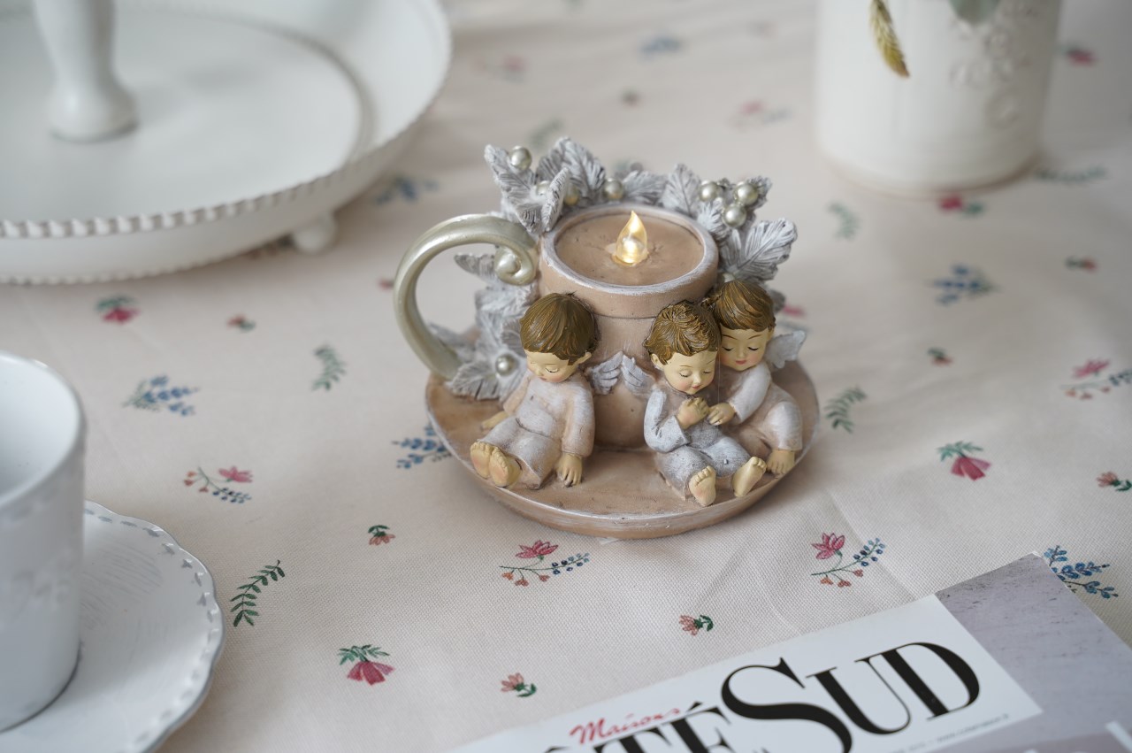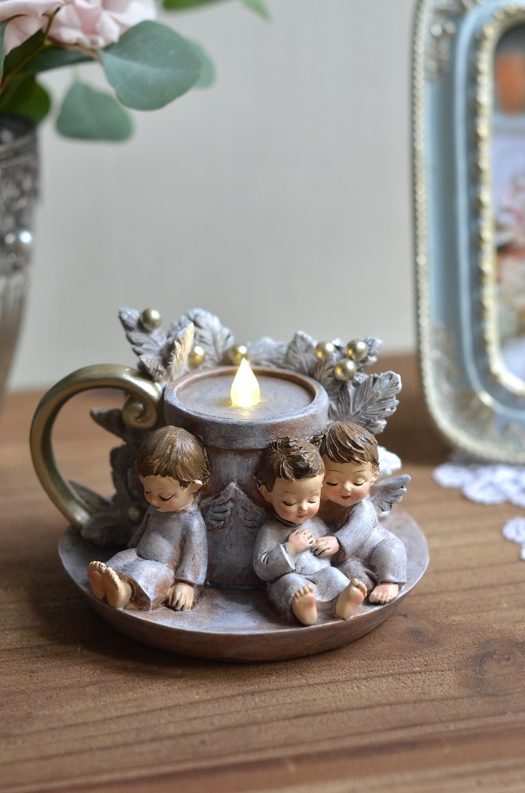 沉潛而溫婉, 平和且靜謐 做工精巧的LED燈天使燭台, 散發古典雅致的氣韻~ 不論擺放客廳 餐桌 或玄關 或窗台, 除了帶來視覺上的美感, 更賦予心靈上的平靜, 為日常生活帶來一種靜心的陪伴 ! 使用3顆水銀電池