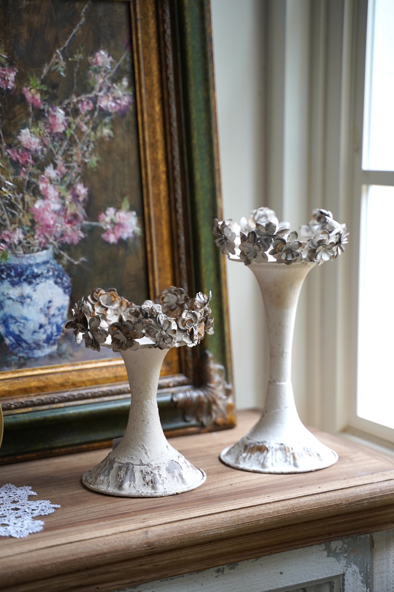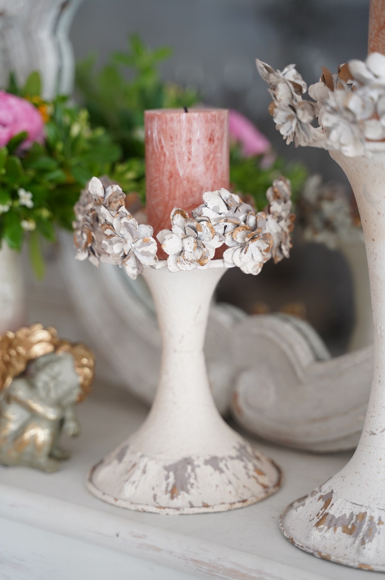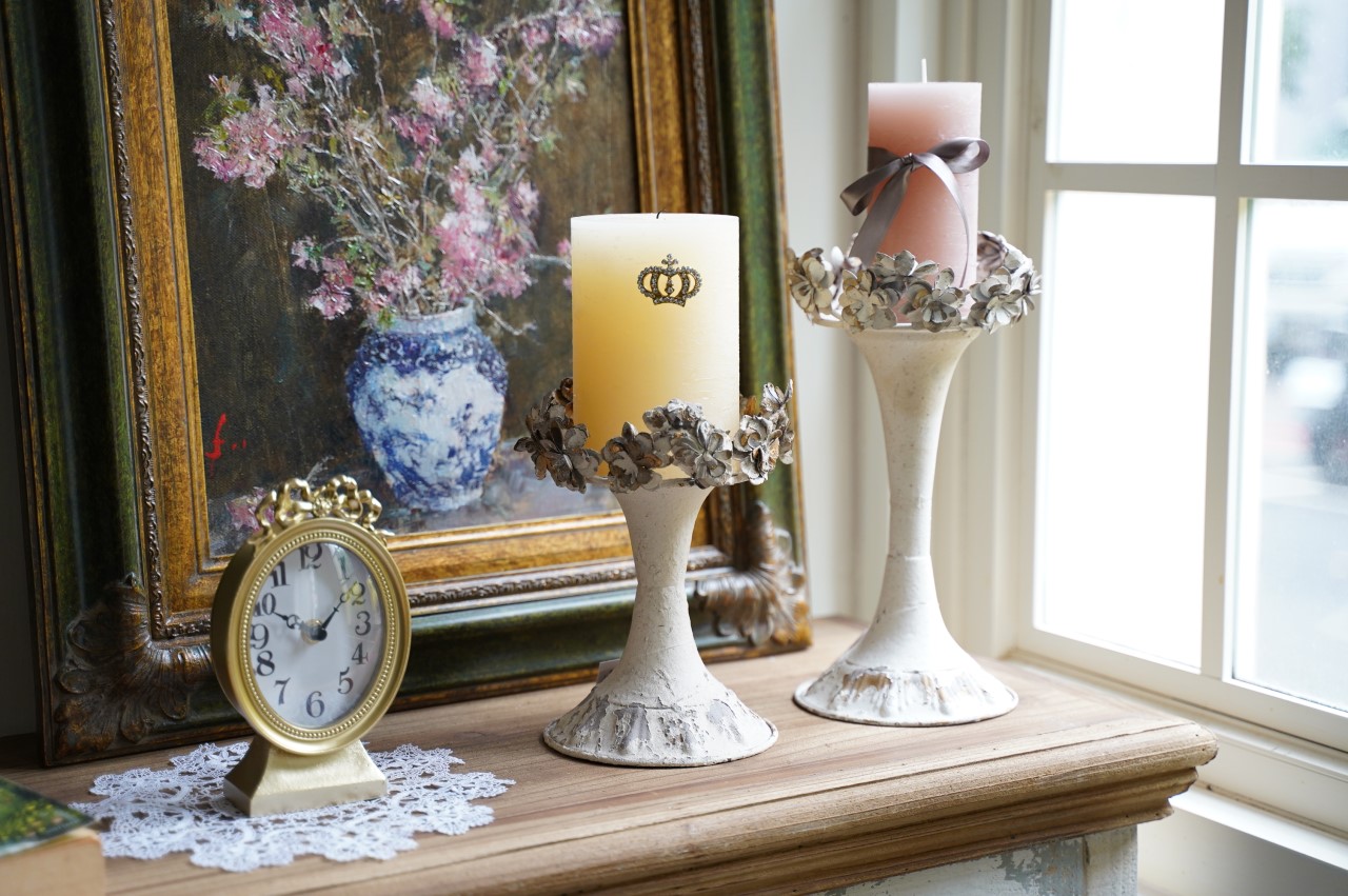 當午後的陽光輕輕照進室內, 這對 法式復古燭台 靜靜佇立在壁爐架上, 像是從法國老宅裡搬來的一角時光。 刷舊的質感、細緻的花圈紋飾, 都藏著一點優雅的老靈魂,帶著歲月與手作的溫度。 不點燭光時,是空間裡柔美的擺飾;點燃時, 則像喚醒了某段溫柔的記憶。 擺上一對,讓家的角落多一點法式風情與故事感。