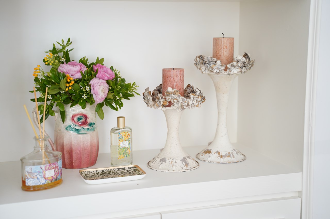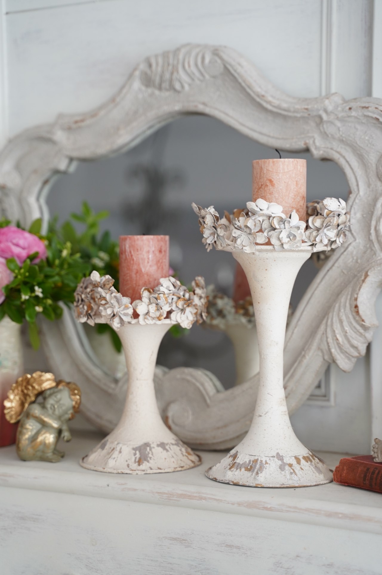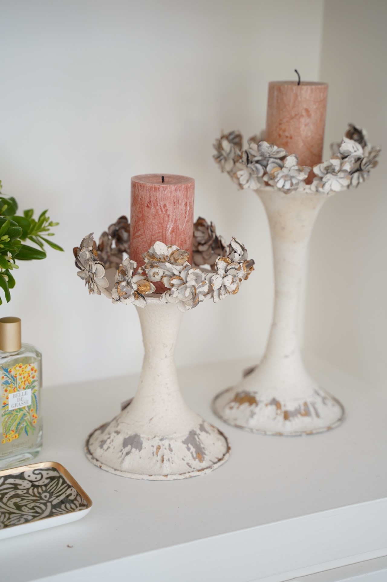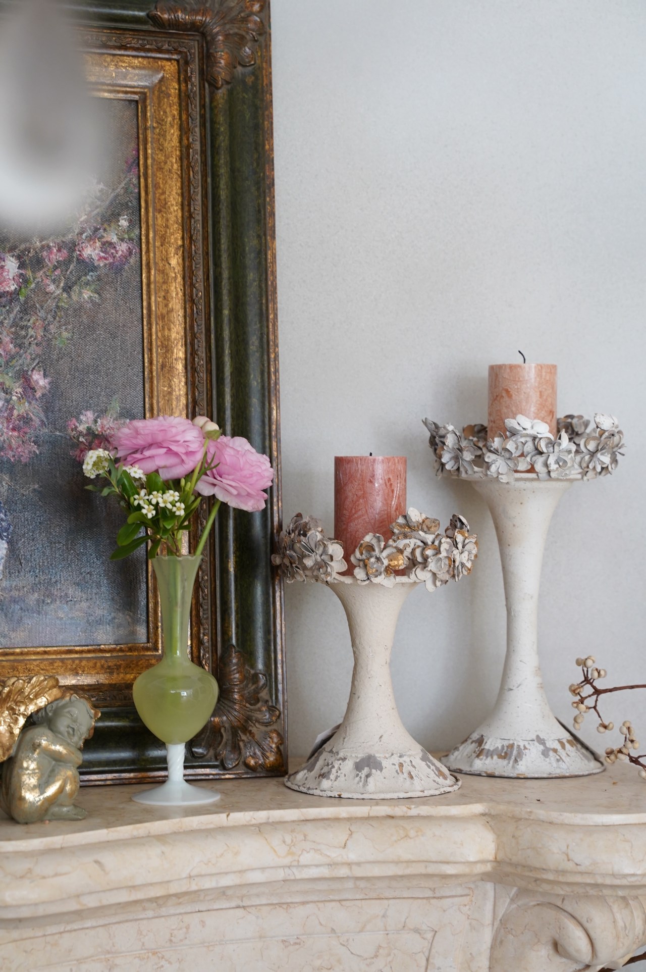 當午後的陽光輕輕照進室內, 這對 法式復古燭台 靜靜佇立在壁爐架上, 像是從法國老宅裡搬來的一角時光。 刷舊的質感、細緻的花圈紋飾, 都藏著一點優雅的老靈魂,帶著歲月與手作的溫度。 不點燭光時,是空間裡柔美的擺飾;點燃時, 則像喚醒了某段溫柔的記憶。 擺上一對,讓家的角落多一點法式風情與故事感。