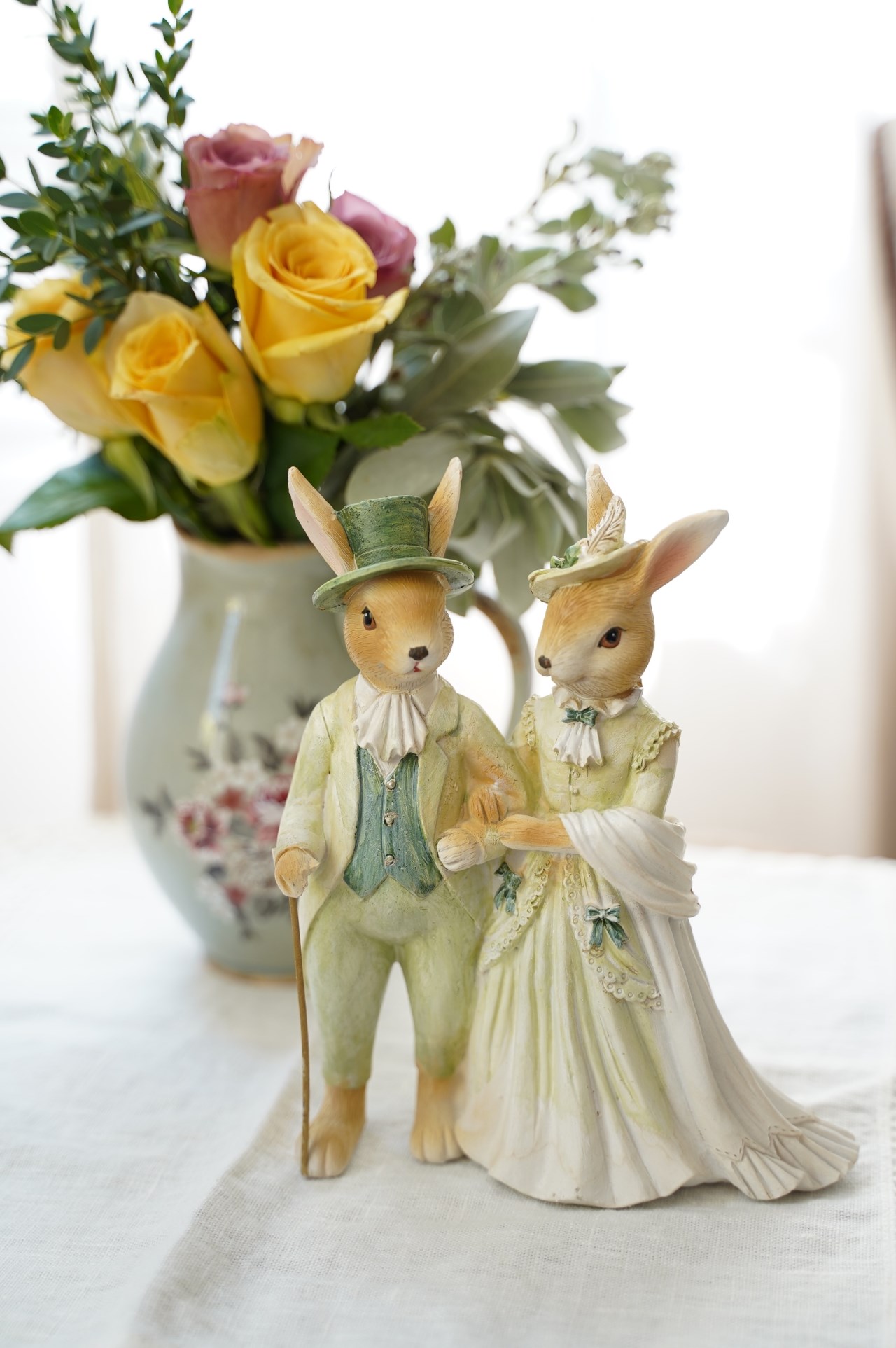 I love you 兔 大喜之日,滿滿祝福 兔子有著多子、孕育和興旺發達的象徵, 作為新婚賀禮, 祝福一對幸福的新人, 早生貴子,同時喻示百年好合, 最適合不過! 帶點法式大人感造型的伯爵與夫人, 優雅中洋溢著溫馨浪漫的氛圍, 作為居家擺飾也好看噢!
