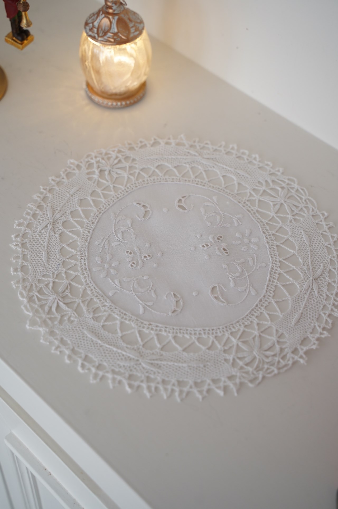 {ROLANDE.D} ∞ 白刺繡蕾絲巾 30cm