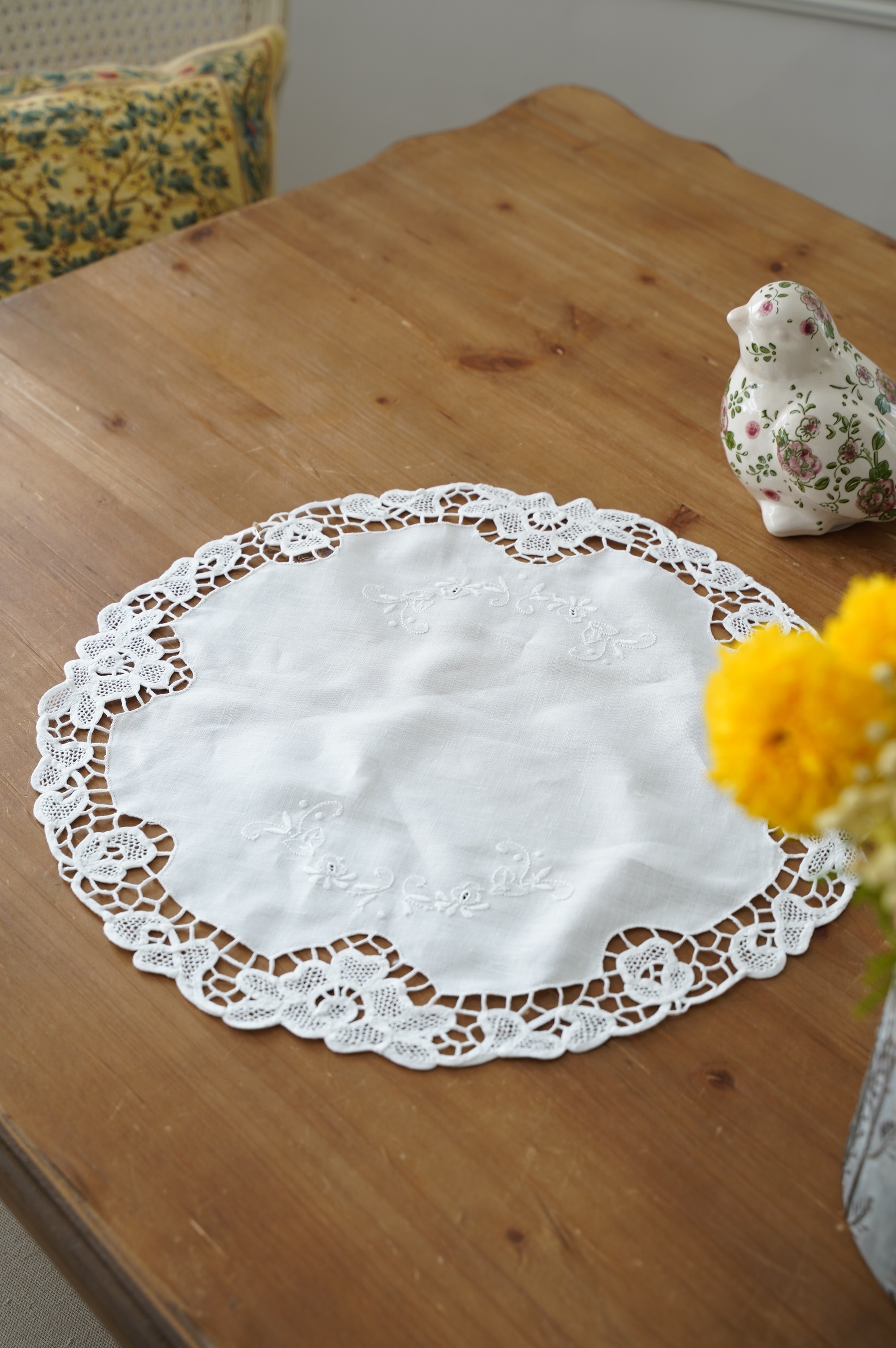 {ROLANDE.D} ∞ 白刺繡蕾絲巾 45cm