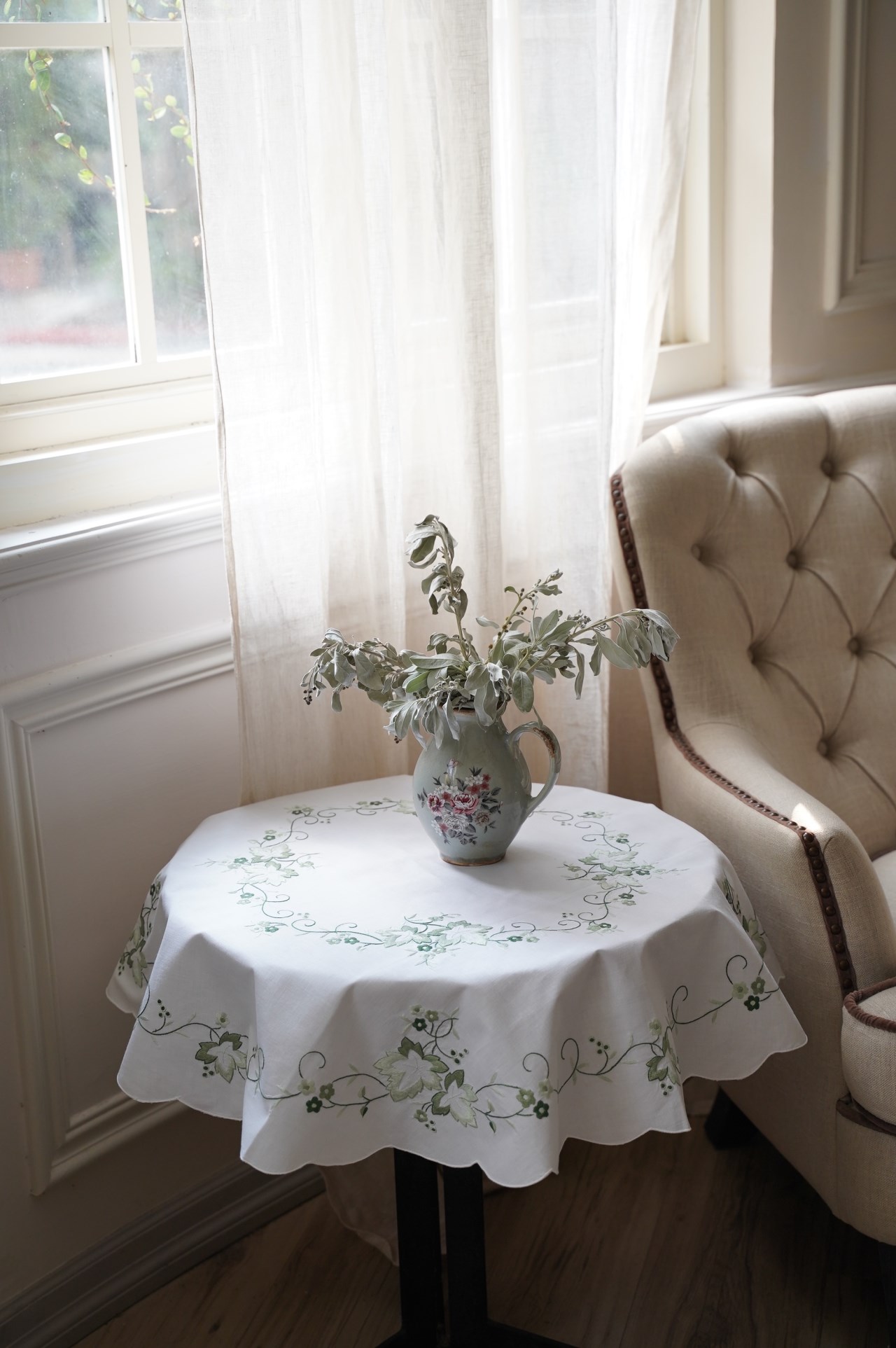 品名:常春藤刺繡蕾絲巾