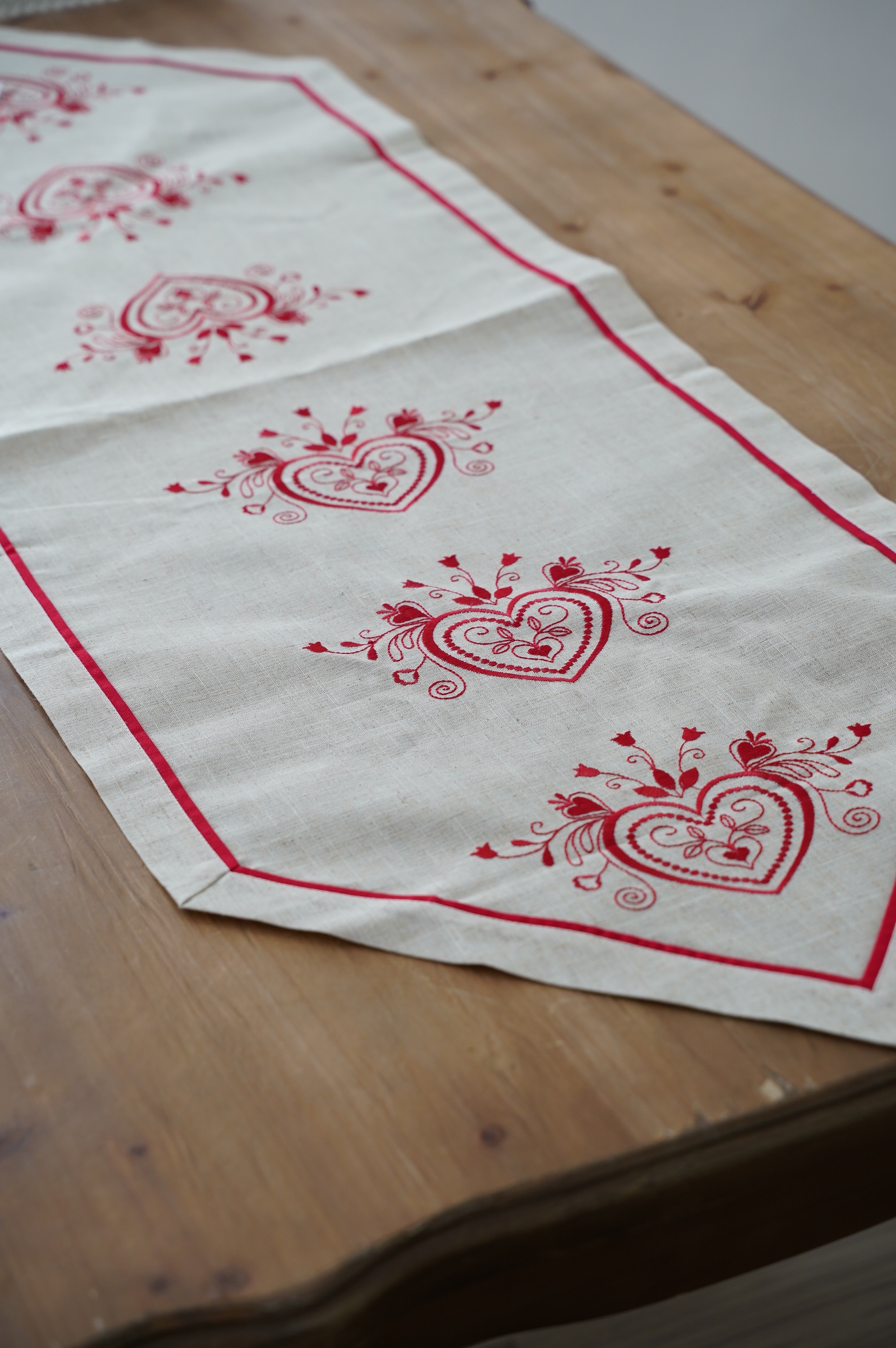 {ROLANDE.D} ∞ 紅愛心刺繡桌旗 50x150cm