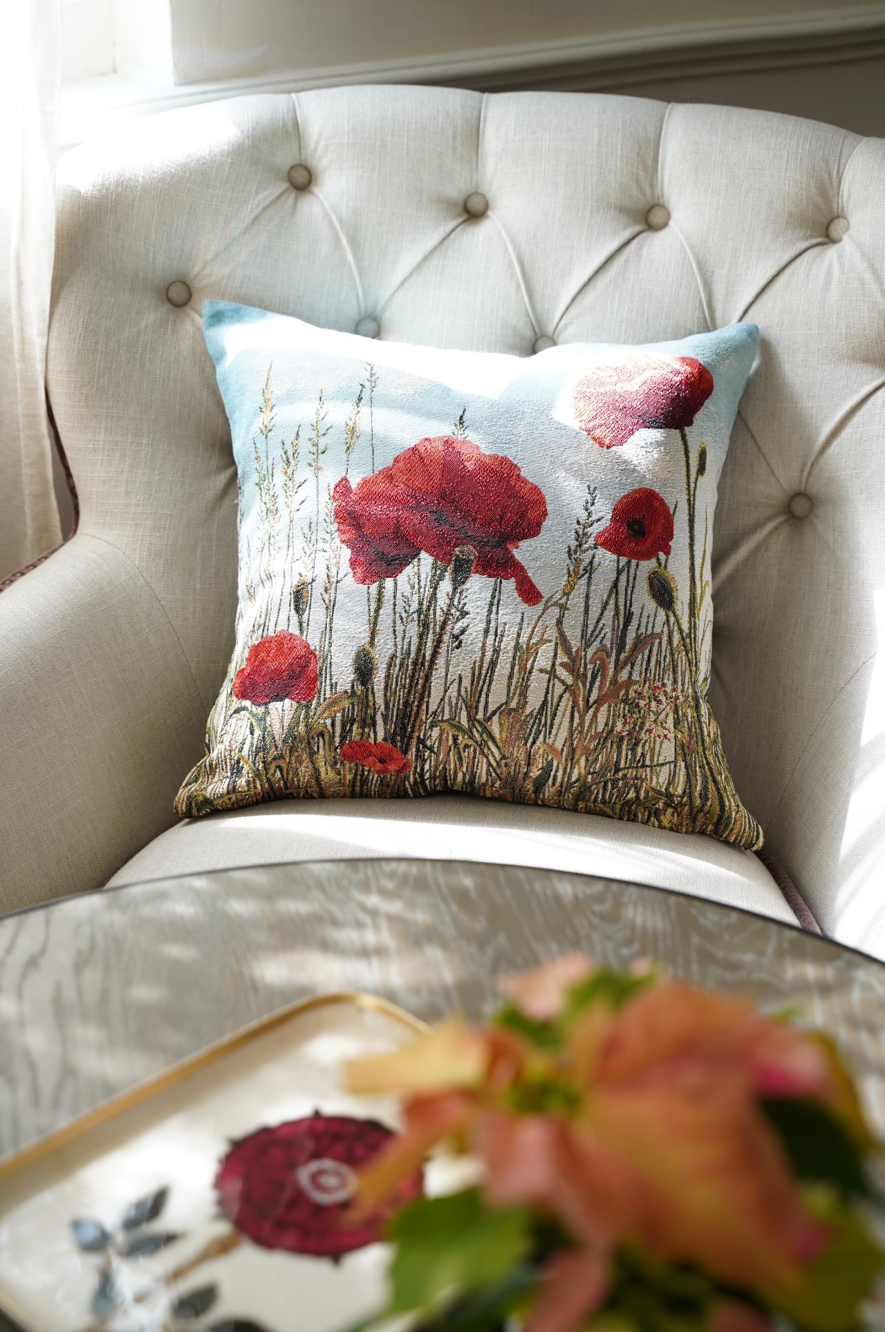 {ROLANDE.D} ∞ 刺繡抱枕套-罌粟花∞ 45x45cm