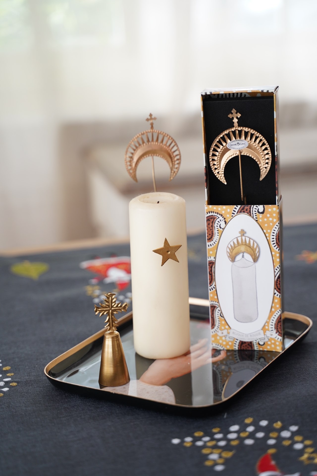 點燃蠟燭,柔和的燭光搖曳, 映照出溫暖與寧靜。 來自法國BonCoeurs 系列的蠟燭珠寶, 為這份光影增添更深層的美感與儀式感。 黃銅保養方式: 銅製品建議保持乾燥、乾布擦拭,若氧化嚴重, 可以使用市面上販售的黃銅專用清潔劑或銅油清潔保養。